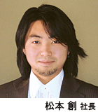 インターネットが普及し始めたころ、不登校児たちのコミュニティサイトをゼロから立ち上げた。プログラムを習得していき、フリーで活動を続けていたが、友人の誘いで、昨年会社を設立した。「従業員の皆が好きな仕事をすればいいと考えている」ことから、同社はシステムに限らず、デザインなどさまざまな事業を行う。松本社長自身も「役者、作家、プログラマ」など多くの顔を持つ。こうした表現活動を多くの人の目に触れるところに持っていくビジネスを確立したいと意気込む。