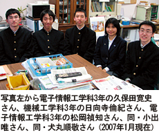 自由部門に参加したのは「コンピュータ研究部」に所属する5人の3年生である。同研究部はプロコンが始まった頃に発足したクラブで、電子情報工学科を中心に電気工学科、機械工学科などの学生15─16人で構成。広さ8畳ほどの部室にはサーバー1台、クライアントPC5台がある。