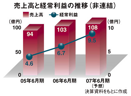 構造計画研究所の直近の業績をみると、昨年度は4期連続の増収増益を達成。一時期、業績が悪化したものの、得意とするエンジニアリングに立ち返ることで好転させた。今年度は営業利益率9.7%を目指す。4年後の2011年6月期には営業利益20億円をイメージしており、仮に売上高が100億円あまりで横ばいだとすれば、営業利益率は20%近くなる計算だ。