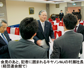 キヤノンMJは昨年4月、キヤノン販売から社名を変更し、今年3月に蝶理情報システムを買収したばかり。グループにキヤノンソフトウェア(東証2部上場)、キヤノンシステムアンドサポートなど20社を抱え、従業員総数は1万6000人(06年12月末現在)、連結売上高は9100億円(07年12月期予想)。2010年のITサービス関連売上高を3000億円とする「ITS3000計画」を推進している。