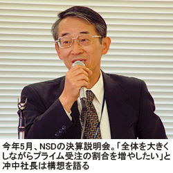 だが冲中社長は「現在のNSDにはまだまだ不満がある」という。それは「社内の空気が、プライムで受注するぞ、という方向に向いていないこと」だ。