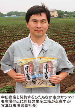 中国・青島にも合弁会社の「干し芋」工場がある。ただ、こちらは、一般流通向け商品を安定供給するための工場という位置づけ。「茨城の土壌と気候に合った、感動を与えるこだわりの商品作りには、日本の生産体制を整えるべき」(鬼澤社長)と、2005年にダイフクの自動物流倉庫(400パレット)を新設。従来利用してきたオービックビジネスコンサルタントの販売管理システム「商奉行」を最新版のERPに切り替え、倉庫とデータ連動させた。