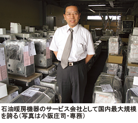 小阪専務は「企業の利益を高めるには、労働生産性を上げることに尽きる」と、IT利活用に前向き。実は、「CTIシステム」を導入した際、各サービスマンにパソコンを持たせ、営業状況を管理するシステムも検討した。ただ、「端末が増え管理が重荷になるし、サービスマンはパソコンのキーを叩く時間的余裕もない」ため、いったん断念。2年前、当時のこの構想を含め限界だった「CTIシステム」の検索の高速化と同時に再構築することを決断。当時の実情をよく知るITCの佐々木氏へ依頼した。