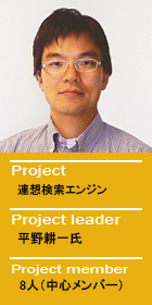 自然言語処理を駆使した連想検索エンジンの開発に着手したのは2006年4月から。新しい技術を開発、評価する情報技術本部のなかで、まずは3人で開発をスタート。その後、自然言語処理技術の根幹に長けた人材をプロジェクトチームに組み込んでいった。