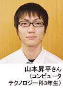 そんな経験をしながら3位入賞を重ねた岩田さんが今春、同校を卒業し、全国大会優勝への悲願は、同じコンピュータテクノロジー科3年生の山本昇平さんに託された。1年先輩の岩田さんの背中を見ながら、山本さんも1年生の時から、「ものづくり同好会」で研鑽を積んできたのである。