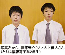 そんな山本さんを先輩として見つめているのが、情報電子科(コンピュータテクノロジー科は06年度から情報電子科に変更)2年生の藤原宏介さんと大上健人さんだ。藤原さんは、今年度の中国地区大会で山本さんに次いで準優勝している。