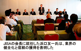 JISA会長に就任した浜口友一氏は最初の会見で、「ITサービス産業の魅力づくりに取り組む」と宣言した。情報サービス産業が社会・産業の情報化、ひいては人々の生活を便利に、豊かにする仕組みづくりに貢献する21世紀に必須の産業であること、「3K」と呼ばれるような就労環境はごく一部の特殊なケースであること──等々を訴えたい考えは理解できる。「そんなふうに難しく考えないで、業界をあげて“見える”形の社会貢献活動を展開すればいい」という声もある。