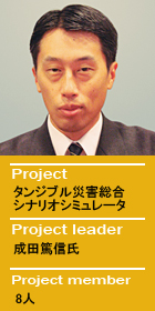 独自開発のシミュレータでは津波の大きさ、住民の要避難時刻、道路の通行状況、火災発生などがシミュレーションできる。片田教授と共同開発し、06年10月に発表した「タンジブル災害総合シナリオシミュレータ」では、さらにシミュレーション精度を向上させ、災害対策戦略策定、防災教育用としてUIの改良を行い、操作性を高めた。