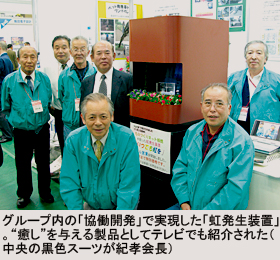発足当時、中小企業庁の施策「コーディネート活動支援事業」の採択を受けた。その補助金で、情報リテラシーを上げる作業から八木氏を中心に一歩ずつ活動を実施。紀会長は「ITを現業に結びつけるというより、仲間づくりにITが役立つことが分かった」と、少しずつだが、IT利活用に目を向ける。現在、加工や受注といった仕事に加え、消費者ニーズを捉えた製品を開発するまでに連携が深まった。世界初の「虹発生装置」は、そんな連携から生まれた“癒し”製品だ。(谷畑良胤●取材/文)