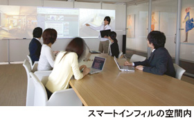 建築・内装工事なしで可変性の高い空間を構築できるシステムユニット「スマートインフィル」と、情報コミュニケーションを支えるソフトウェア群「スマートウェア」により、「場」の成長に合わせ空間を組み替え、誰もがIT装備を使いこなせる情報空間を作り出せる。この「スマートインフィル」の前身となった情報空間ユニット「スマートパオ」も、協創工房での産学連携開発から生み出された。これからの情報活用空間に対する斬新なコンセプトや、使い勝手の良さが評判になり、大学や企業などに口コミで35セットが売れた。