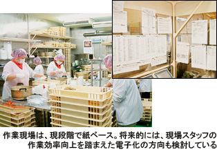 通常、和惣菜業者による製造は一度に50-60キログラムの食材を煮込んでいく。ところが、同社は2キログラム単位で調理するという。「家庭では、50-60キログラム単位で煮込むことは絶対にあり得ない。徹底的に味を追求するのであれば、少量なのが一番。2キログラムという量は味を追求しながら、なおかつ生産性を高めるうえでの限界点」。消費者からは、「3日経っても味が落ちない。むしろ、味がしみ込んで深みが出る」との評判を得ているそうだ。多くの“ファン”を確保していることが同社の強みといえる。しかし、現場の作業は他社と比べれば非効率であることは確かだ。そのため、売上高の増加にも限界がある。だからといって、「商品の品質を落としてまで今のやり方を変えるつもりはない」というのが青山代表取締役の譲れないコンセプト。そこで、ITコーディータの長尾和彦・エイド代表取締役が経営革新を中心としたIT化(品質に直接関係しない前工程部分の徹底的な効率化)を進めることになる。