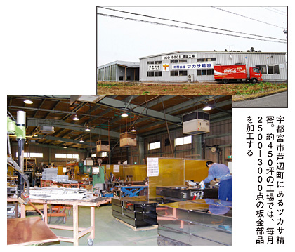 栃木県の宇都宮駅から車で約30分。のどかな田園風景が広がる一角に、板金加工業を展開するツカサ精密の本社・工場がある。従業員約30人、売上高は5億6000万円と規模は決して大きくないが、1984年設立の老舗に対する地元顧客の信頼は厚い。その同社が07年5月、新たな生産管理システムを稼働させた。サポートしたのは栃木県内で活動するITコーディネータ(ITC)福沢繁氏と、個人事業主としてSEビジネスを手がける南木正和氏。ツカサ精密の渡邊清司社長が要望していた“作業工程の見える化”を、バーコードリーダーと独自開発Webアプリケーションの組み合わせというユニークな設計で実現させた。ツカサ精密が持つ約450坪の工場では、毎月約150社から依頼された2500-3000種類の板金部品を加工する。(1)板金からの型抜き(2)曲げ加工(3)溶接(4)組み立て(5)検査、の5段階でさまざまな部品が目まぐるしく工場内を動く。大量の商品を管理するために01年、渡邊社長は知り合いのITコンサルタントに頼み、生産管理システムを初めて稼働させる。ところが、運用段階に入ると致命的な問題に気づいた。「作業工程を把握できない」。部品がどの作業段階にあるのかが、すぐに分からないのだ。