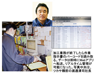 2005年5月、板金加工業のツカサ精密(渡邊清司社長)は、生産管理システムの刷新を決め、栃木県のITコーディネータ(ITC)福沢繁氏に頼んだ。要望は作業工程の“見える化”。部品加工の作業進捗をリアルタイムで管理する新システムを求めた。福沢氏は渡邊社長の要求に対し「ITはあくまで手段。事業戦略を明確にし経営改革のなかにシステムを組み込む」ことを説明。従来のシステム導入に疑問を持っていた社長の共感を得て、開発がスタートした。