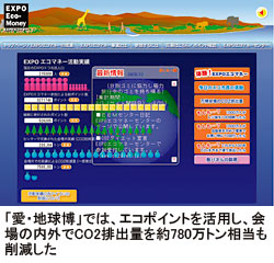 ただ、エコポイントは環境省のオリジナルな施策ではない。3年前に開かれた愛知万博「愛・地球博」でもレジ袋辞退者やゴミの持ち帰りにポイントを付与し、それに見合う額の植樹を行った。185日間の会期中、会場の内外で削減されたCO2排出量は約780万トン相当と算定されている。万博終了後も事業はNPO法人エコデザイン市民社会フォーラムが運営し、名古屋市周辺で継続中だ。