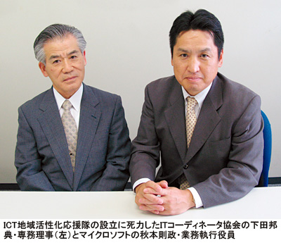応援隊を担当するマイクロソフトの秋本則政・業務執行役員は「キャラバン隊は一定の成果があった。ここで得たのは地域で中心的に動くヒトが必要ということ。そのうえで、地域再生に向けたヒトづくりにITCの活動内容は参考になる」と、同協会と連携する理由を説明する。直接的にIT需要を生まない“足の長い事業”だが、「地域活性化にITは必須」(同)と、地道な活動からIT利活用を促すことを狙っている。