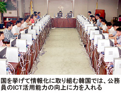韓国では、会社でも公共機関でも業務そのものが情報化されているのでパソコンがないと仕事ができない。国家事業として行政の情報化はどんどん先へ進んでいるのに、公務員がそれについていけないようでは意味がない。行政を効率化し、国民にきちんとサービスするためにも、公務員のICT活用能力を高めなければならないとして、その分野の教育も綿密に行われている。