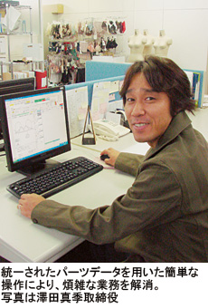 兵庫を拠点に、下着の企画・販売を行うアンドール(岸村裕子代表取締役)は主に通信販売や、量販店、専門店のOEMを中心に売り上げを伸ばしてきた。高級専門店のOEM(相手先ブランド供給)を開始し、またプライベートブランドも立ち上げた。デザイン企画から生産、納品まで一貫した管理体制のもと、製品を供給しているのが強み。前期(2008年6月期)は売上高で前年比90%増を果たすなど、成長株の企業だ。高成長の裏には、デザインから生産管理までを一元的に管理する業務システムの存在があった。上流のデザイン段階から各パーツ情報をデジタル化してデータベースに収容した。それらに使用資材や見積もりなどの情報をひもづけて管理し、簡単な作業で商品生産に必要な帳票を自動作成できるようにした。また、生産管理情報のデジタル化により、中国の協力工場までスムーズに情報が流れる仕組みをつくり、業務効率を大幅に向上させた。