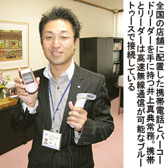 携帯電話は、少し古い型を使うことで店頭販売価格が実質0円のものを採用。購入価格を抑えた。バーコードリーダーも3万円程度のものを選び、初期導入コストは従来システムの約25万円のおよそ8分の1にまで大幅圧縮。維持費も半額以下に低減させた。先行導入した「160店舗分の予算で、全店舗に導入できる」(井上常務)ことから、一気に全国の店舗で同システムを採用することに決めた。