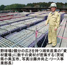 建物施工時に使う足場などを貸し出す仮設資材リース会社の湘栄産業(原澤武夫社長)は、本拠地の茨城県以外に市場を広げるため、3年前に東京営業所(江東区・北砂)を構えた。同社で取り扱う資材は、足場の資材をはじめ支保工材など約200種類。大きさや用途で分別すれば2000アイテムを超える。「東京進出」は、大手ゼネコンとの取引拡大に寄与した一方、発注、受注、出庫、検収などの作業負担を軽減する必要に迫られる契機ともなった。現在のITシステムを導入する以前は、在庫の帳尻が合わないような事態が頻繁に起こっていたと、IT導入で先導役を果たした藤井尚之・リース事業部長は述懐する。「足場材を100個貸し出したとすると、返却時には98個しか返ってこないとか、逆に貸し出し数より増えているケースもあった」。景気が順調な時代、馴染みの地元建設会社との取引なら許容範囲だった。しかし、取引量が増えるほどに損害額が広がる危険性があるだけでなく、建設会社や再リースの依頼先との信頼関係を壊しかねなかったのだ。