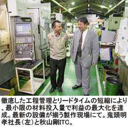 一連の改革では、品質管理のISO9000シリーズの厳格な運用や、社員6人が機械加工系の国家技能検定1級を取得するなど、能力の高さが第三者にも分かるようにした。世界同時不況の影響で、足下の受注は底ばいの状態が続く。幸い中部地区は、鬼頭精器製作所の既存客の多くを占める輸送機や工作機械のメーカーだけではない。例えば、航空宇宙産業や太陽光発電など環境ビジネス絡みの案件も増えてきており、「納期遵守率の向上やリードタイムの短縮といった実績を武器に、新規顧客を開拓する」(鬼頭社長)と、意欲を示す。既存客が戻ってくる頃には、不況前より大幅に強化されたビジネス基盤をもつ企業への成長を目指す。