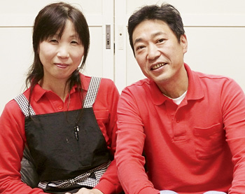 平山牛舗はアットホームな雰囲気なのが持ち味だ(右は平山敏明代表取締役、左はウェブ制作担当の平山久美子夫人)
