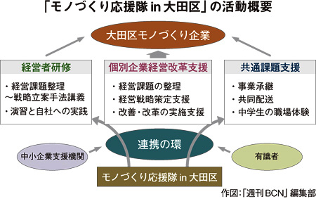 「モノづくり応援隊in大田区」の設立は2005年8月。大田区産業プラザ(PIO)でITCの全国大会である「ITCカンファレンス2005」が2005年10月に開催されたのをきっかけに、15人の公募ITCが立ち上げた。当初は任意団体として活動していたが、08年にNPOとして再スタート。地域の振興に寄与すると評価されたことが設立のきっかけだ。