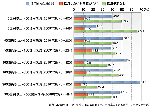 システムごとにクラスタ構成を組むよりも、コストや運用管理の面で有利な場合もあるだろう。このように、比較的低い年商帯の中堅企業は、システムの安定性を高める手段としてサーバーの仮想化に着目している。