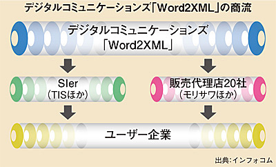デジタルコミュニケーションズでは、「Word2XML」の派生製品を拡充。PowerPointからXMLを生成する「PPT2XML」は、ホンダアクセスが開発した本田技研工業の純正カーナビゲーションシステムに採用された。これにより、レンタカー会社などがコンテンツをつくることも可能となる。