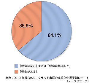 図1は、年商500億円未満のSMB1000社に対して行った調査で、「SaaS形態のサービスをすでに利用中」と回答した企業に対し、活用に際してセキュリティ懸念があるか? をたずねた結果である。実際にSaaSを導入したユーザー企業では、セキュリティへの懸念が意外と少ないことが分かる。