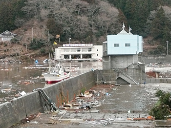 大船渡市の三陸町に事務所を構える綾里漁業協同組合(綾里漁協)。漁師と市場を結ぶ役割を果たすだけに、事務所は海のすぐそばにあり、津波の被害をもろに受けた。津波は、高さ8mの防潮堤を飛び越え、3階建ての綾里漁協の事務所ビルを飲み込んだ。1階は完全浸水、2階にあった机やオフィス機器はほとんど流され、3階だけが被害を免れた状況だった。この甚大な被害からの復旧を目指して業務再開をサポートしたのが、日本IBMのパートナーで、岩手県盛岡市に本社を置く地元ITベンダーのシンエイシステム(中島浩章社長)である。