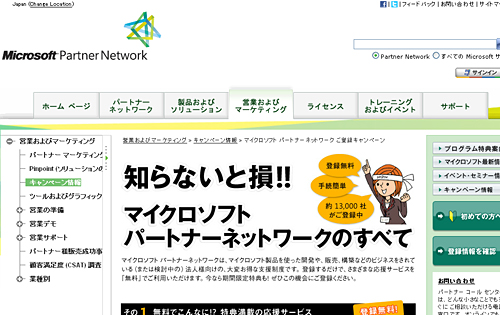 このほか、クラウドに特化した支援制度「クラウドパートナープログラム」や、ITベンチャーを育成する支援制度「Microsoft BizSpark」など、日本マイクロソフトにはさまざまな支援制度がある。「Microsoft Partner Network」のホームページには、ほぼすべての販社向け支援制度の情報をアップしている。日本マイクロソフト製品の販売を手がけていないITベンダーは、「Microsoft Partner Network」を活用して製品を販売すれば、ビジネスは確実に拡大する。