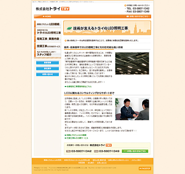東京都台東区に本社、埼玉県さいたま市に支店を置くトライ(澤田護視代表取締役)は、電気・空調工事を手がけている。創業はおよそ10年前。工事会社でありながら、技術者のほかに数人の営業担当者を抱えていて、営業力を強みとしている。田根政明・取締役総務部部長は、「顧客を直接開拓することに力を入れている。最近は、LED照明工事の専門ウェブサイトを立ち上げて、相当数の問い合わせをいただいている」と会社の方針と実状を話す。