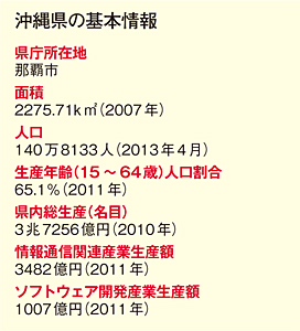 しかし、1998年、経済的自立に向けた新たな施策として、IT産業を観光と並ぶ県内の中心産業に育成する「沖縄県マルチメディアアイランド構想」を打ち出した。さらには、2002年に国の新たな沖縄振興計画もスタートし、IT産業振興にも補助金を投入。その結果、2000年と比較した2011年のIT産業規模は、雇用者数が8600人から3万1845人、生産額が1391億円から3482億円、誘致企業が54社から237社と順調に成長を遂げた。