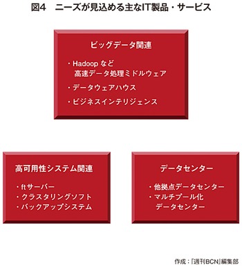 高可用性システムに関連して、システムの運用監視ツール・サービスのニーズも高い。システムの状態を常時監視し、トラブルを未然に防ぐほか、万が一システムに不具合が発生しても迅速に復旧する仕組みを取り入れているからだ。一般企業では受け入れられないような高価で高度なツールでも、受け入れられる可能性が高いのがインターネットサービス業。ITベンダーにとっては、高度な提案が要求されるものの、案件単価が高いという魅力があるターゲットだ。