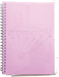 商談の場で考えていることを書き留めて、お客様に見せるノート。ホワイトボードを使うことが多いが、それがない場合に備えて、このノートを持ち歩いている。