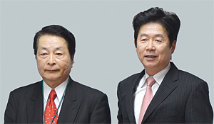 ITコーディネータ協会の播磨崇会長(左)と西武信用金庫の落合寛司理事長