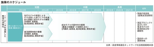 根幹となる施策は、総務省がすでに2012年度から進めている「ICT街づくり推進事業」だ。雇用の創出をはじめとする、地域が抱える複合的な課題を解決するために、ITを活用した新たな街づくりの成功モデルや共通プラットフォームの実現を目指す。さらに、その成果を国内外に普及させる意向だ。
