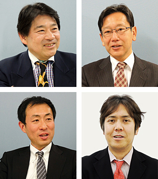 (左上から)情報政策課長 間宮淑夫 氏、情報処理振興課長 江口純一 氏、情報経済課長 佐脇紀代志 氏、情報通信機器課長 荒井勝喜 氏 ユーザーと連携した新ビジネス創出に期待