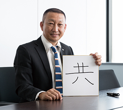 当社は、「共生(ともいき)」という言葉を理念に掲げている。これは、当社とお客様と、そして社員同士で密な関係を築き、共に生きるということ。私はこの理念に、上から目線で部下に接するのではなく、同じレベルで会話をして、情報を「共有」することをつけ加えたい。上司が叱っても、部下の悪い所はなかなか直らない。部員に他のメンバーのいい所を付せんに書かせて、それを当人に渡すことで自分の強みを意識させ、提案活動に励んでもらっている。