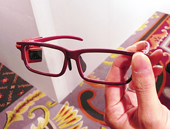 現在、試作中の「東芝グラス」では、眼鏡のレンズに映像を投影する方式を採用。イメージとしては、超小型で軽量のプロジェクターを眼鏡のヒンジ近くに取りつけ、反射光学素子でコーティングしたレンズに映像を映し出す仕組みだ。眼鏡型ウェアラブル端末を本格的な実用段階へもっていくには、この透過型ディスプレイの技術的な克服が不可欠。爰島主任研究員は「東芝は液晶テレビの『REGZA(レグザ)』など映像分野には積極的に取り組んできた。眼鏡型ウェアラブル端末も次世代ディスプレイ開発の一環」と位置づけている。