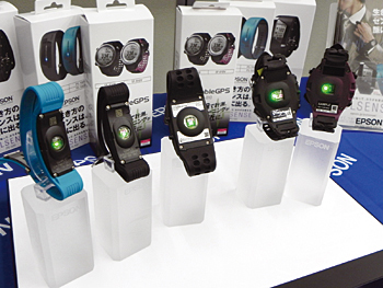 エプソンは、今年夏にイギリスとドイツ、フランスなど欧州地区で先行して脈拍センサ搭載の活動量計「PULSENSE(パルセンス)」を発表。日本では同製品シリーズを11月6日に販売を開始し、他のアジアや北米へも順次展開していく構えをみせる。