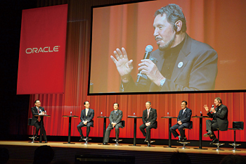 さらには、ゲストとして、初日に伊藤忠テクノソリューションズ(CTC)の菊地哲社長や、NTTデータの岩本敏男社長、NECの遠藤信博社長、富士通の山本正已社長が一斉に登壇し、エリソン会長兼CTOとディスカッションした。日本オラクルの有力パートナーでもある、日本を代表するITベンダーのトップ4人を前にして、エリソン会長兼CTOは非常に上機嫌に見えた。まさに、日本のIT市場に対して、「オラクルは本気でNo.1クラウドカンパニーを目指すのだ」と高らかに宣言するセレモニーだったのだろう。
