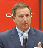 「従来のコアビジネスであるデータベースのライセンスも好調だ。われわれの信条は、ハードウェアとソフトウェアの両面で革新的なテクノロジーを用意し、統合・最適化して最高のソリューションを提供することだ。例えば、エクサデータに代表される垂直統合型の製品は、データベース・システムとして圧倒的なパフォーマンスを発揮している」。
