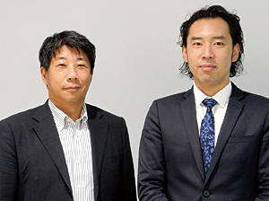 纐纈昌嗣社長(左)と鈴木敏通チャネル営業部部長