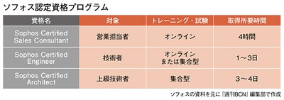 ソフォスは日本で昨年春からパートナープログラムの本格運用を開始し、1年半で400社近いパートナーを獲得した。同社がフォーカスする中小企業市場を攻略するための第2の施策が、パートナー向け教育プログラムの充実だ。今年5月から国内でも認定資格制度を開始し、営業担当者向けの「Sophos Certified Sales Consultant」、技術者向けの同「Engineer」、上級技術者向けの同「Architect」について、日本語で受講および取得が可能となった。とくにEngineer資格では、学習が複数日にわたる充実した内容のトレーニング教材を用意しているが、オンライン受講であれば無償でプログラムを利用できる。