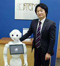 製造業向け基幹系(販売管理、生産管理)システムの開発を得意分野とするソフテムコム。売り上げの8割が客先に常駐するSES(System Engineering Service)で、残りがエンドユーザーからの受託開発案件という構成になっている。経営の安定という視点から、受託開発を売り上げの5割に伸ばすべきとソフテムコムの杉野彰彦代表取締役は考えている。そこで目をつけたのが、ソフトバンクの人型ロボット「Pepper(ペッパー)」。まずは開発案件を受注するためのドアノックツールにする考えだ。(取材・文/畔上文昭)