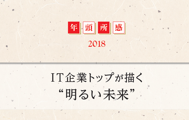 ユーザー企業のIT投資が活発だった2017年。既存システムのリプレース需要はもちろん、「クラウド」「IoT」「AI」などをキーワードに、ユーザー企業が製品・サービスの導入に積極的に動いた。「働き方改革」を実現するためのIT投資も出始めており、景気回復を垣間見ることができた1年だったといえる。18年も、この傾向が続くとIT企業は判断し、“明るい未来”を描いている。成長へと導く「デジタルトランスフォーメーション」の実現を見据え、IT企業各社が製品・サービスの創造、体制整備に取り組む。恒例の新春特別企画「IT企業トップの年頭所感」。18年におけるIT企業の戦略を紹介する。