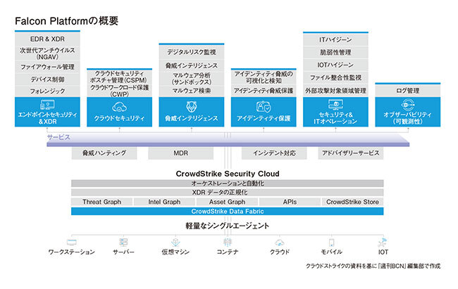 Falcon Platformは、プラットフォーム上で複数の製品群を展開。エンドポイントセキュリティの群では、EDR&XDRのモジュールであるFalcon Insight XDR、次世代アンチウイルス(NGAV)のモジュールなどをラインアップする。クラウドセキュリティの群では、CSPM(Cloud Security Posture Management)のモジュールなどがある。そのほかにもID保護や脅威インテリジェンスなどの群を設けており、現在は20を超えるモジュールを提供中だ。ユーザーはシングルエージェントでモジュールを選択するだけで容易にセキュリティ強化ができるのに加え、一つのコンソールで管理できる利点がある。さまざま機能を統合し、一元管理できる仕組みはXDRのコンセプトと似た部分が多く、鈴木部長は「XDRはこれまでの当社の取り組みの延長線上にあると認識している」と話す。